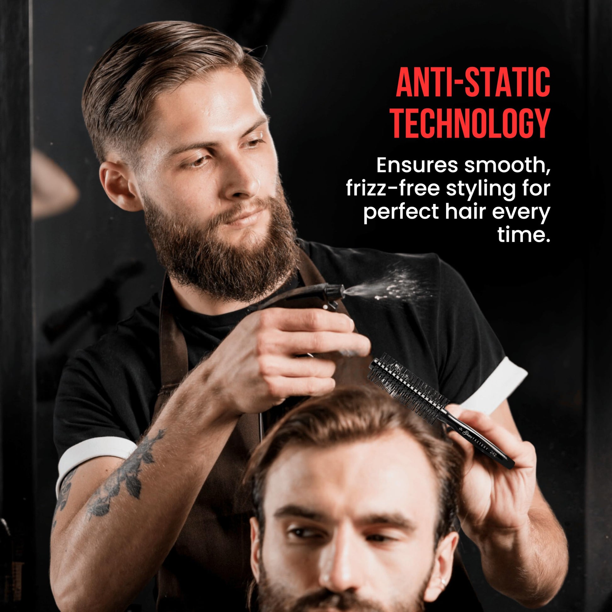 A: A static-free brush prevents hair from becoming flyaway or frizzy during blow-drying. This allows barbers to create sleeker, more polished styles with greater control, particularly useful when working on longer hair or precision finishes.